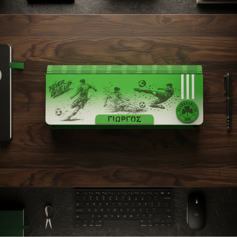 Ξύλινη Κασετίνα με Όνομα " Football Player" με Δυνατότητα Προσθήκης Σήματος Συλλόγου (22*10 εκατοστά)