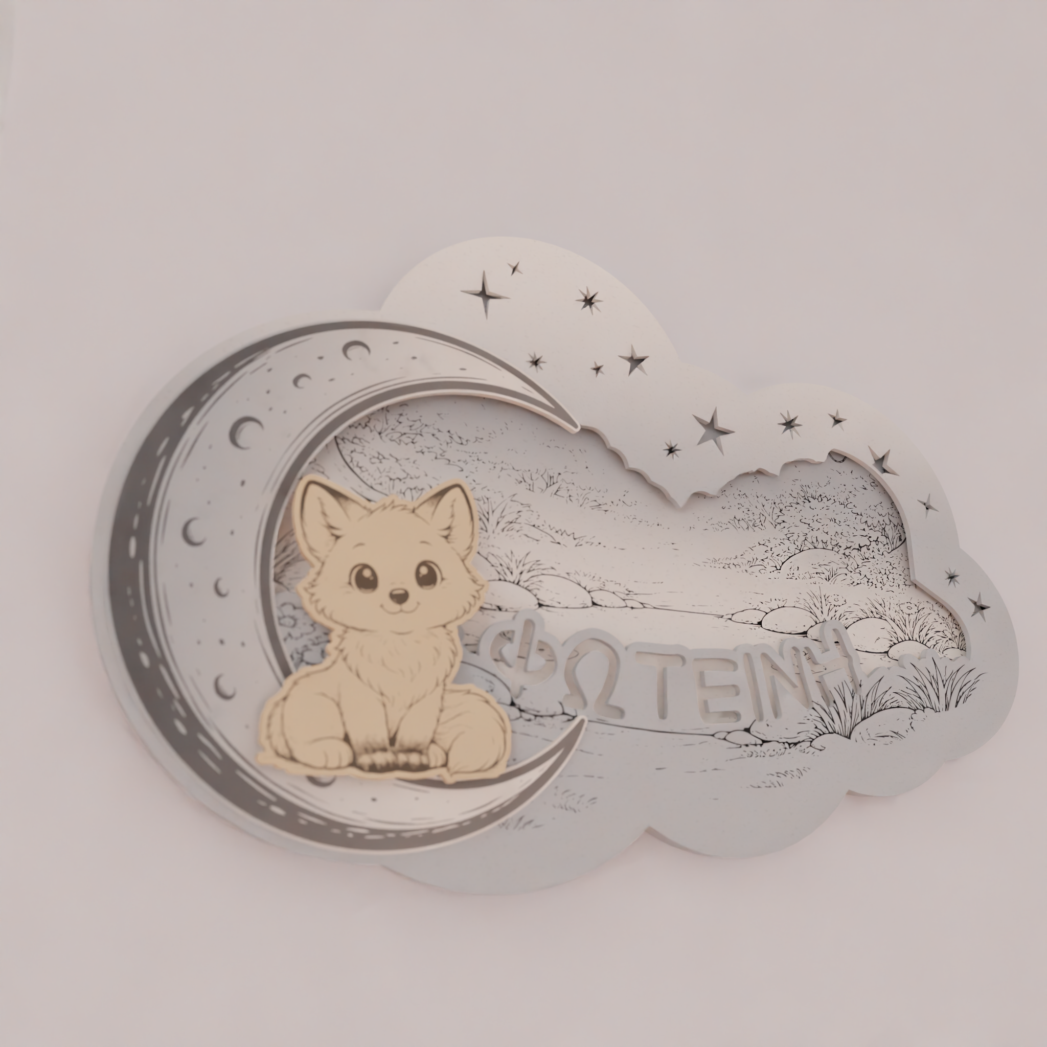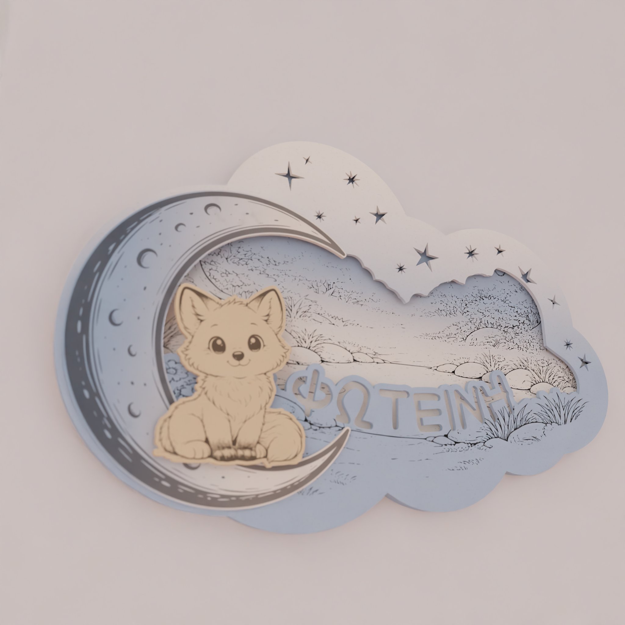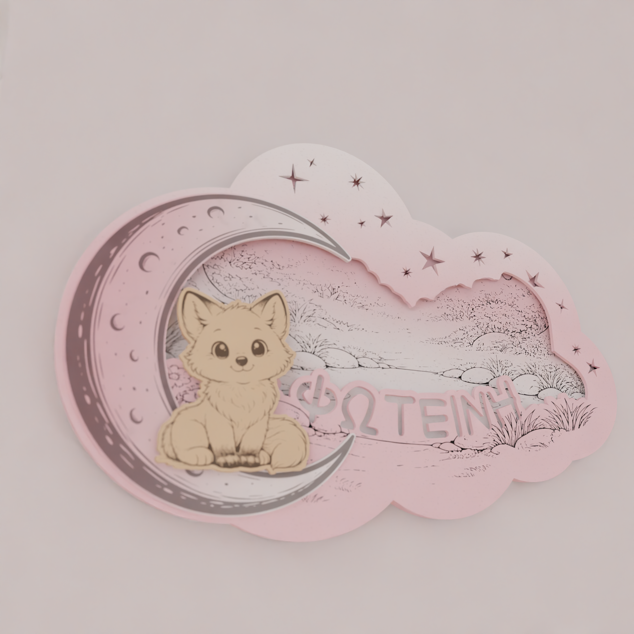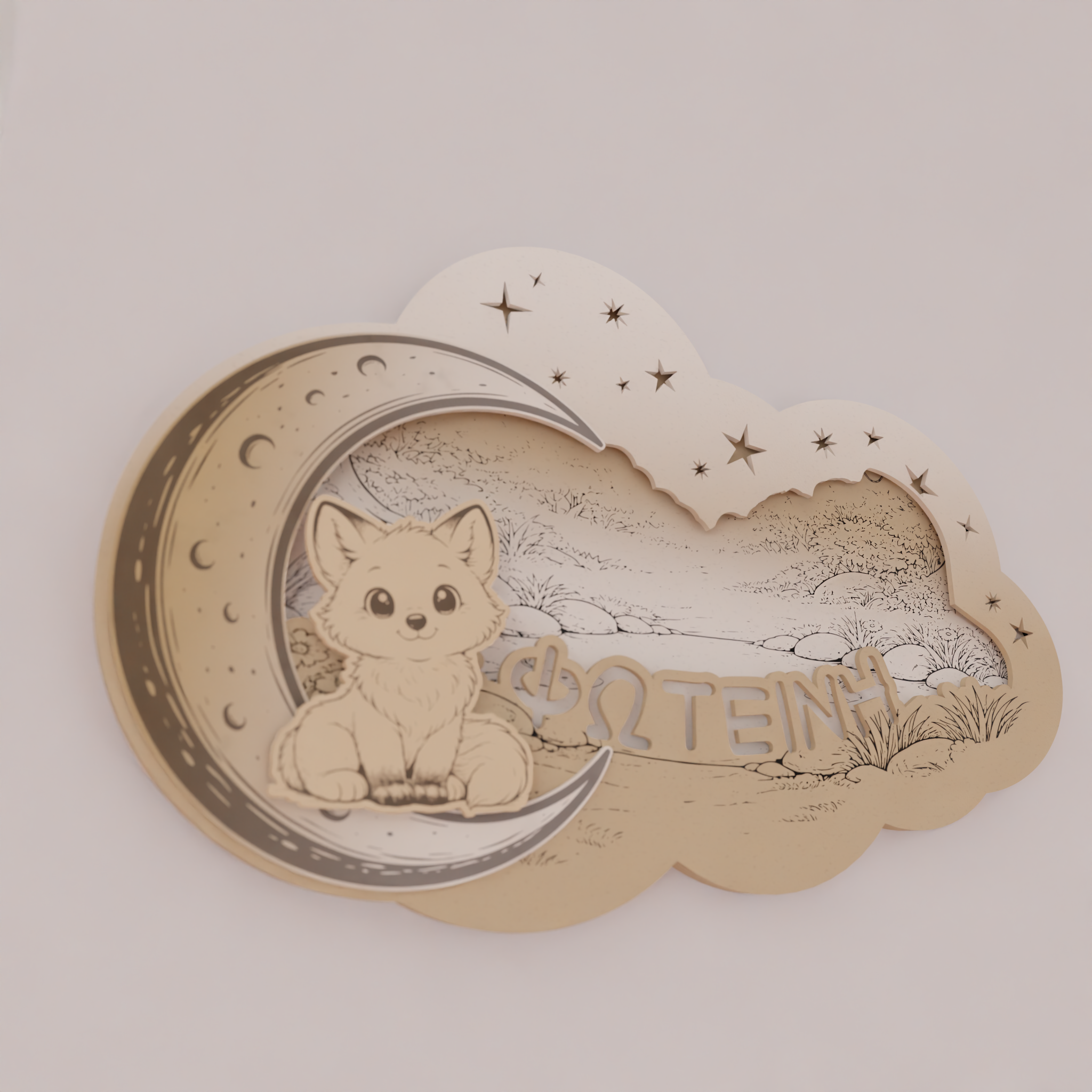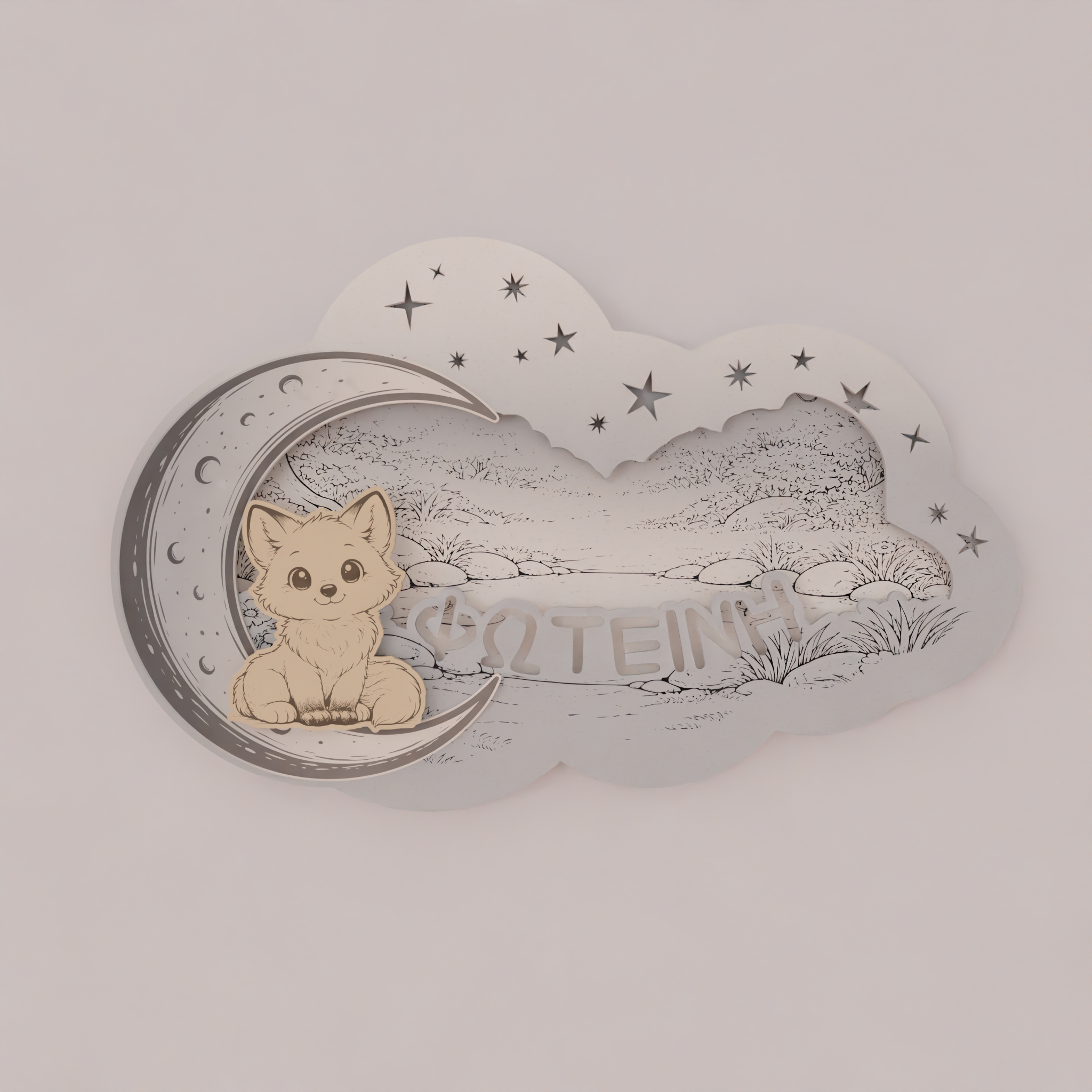 Το όνομα του παιδιού χαράσσεται στο σχέδιο, κάνοντας το φωτιστικό μοναδικό και απόλυτα προσωπικό. Ο απαλός φωτισμός LED 7 χρωμάτων λειτουργεί ιδανικά ως νυχτερινό φως, χωρίς να κουράζει τα μάτια, προσφέροντας ζεστή ατμόσφαιρα στο χώρο.