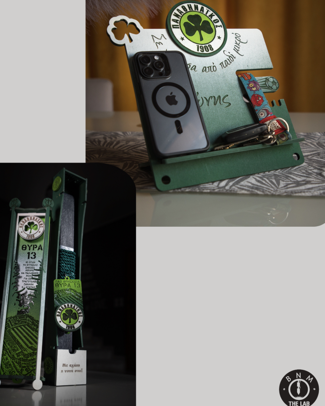 ΠΑΟ Σετ| Πασχαλινή Λαμπάδα & Βάση Tablet/Κινητού/Κλειδιών με Όνομα