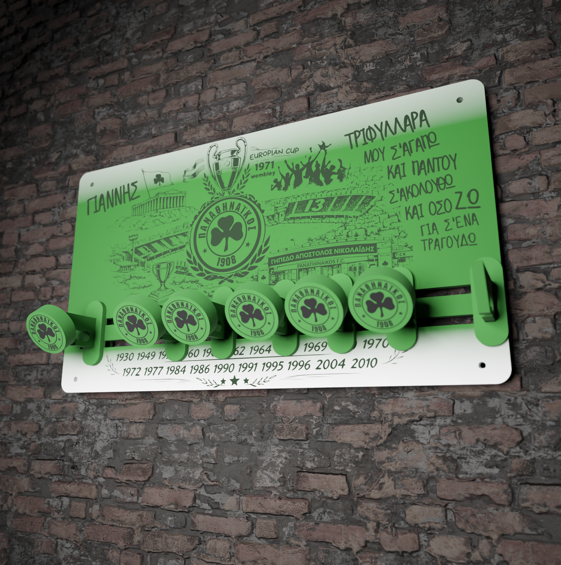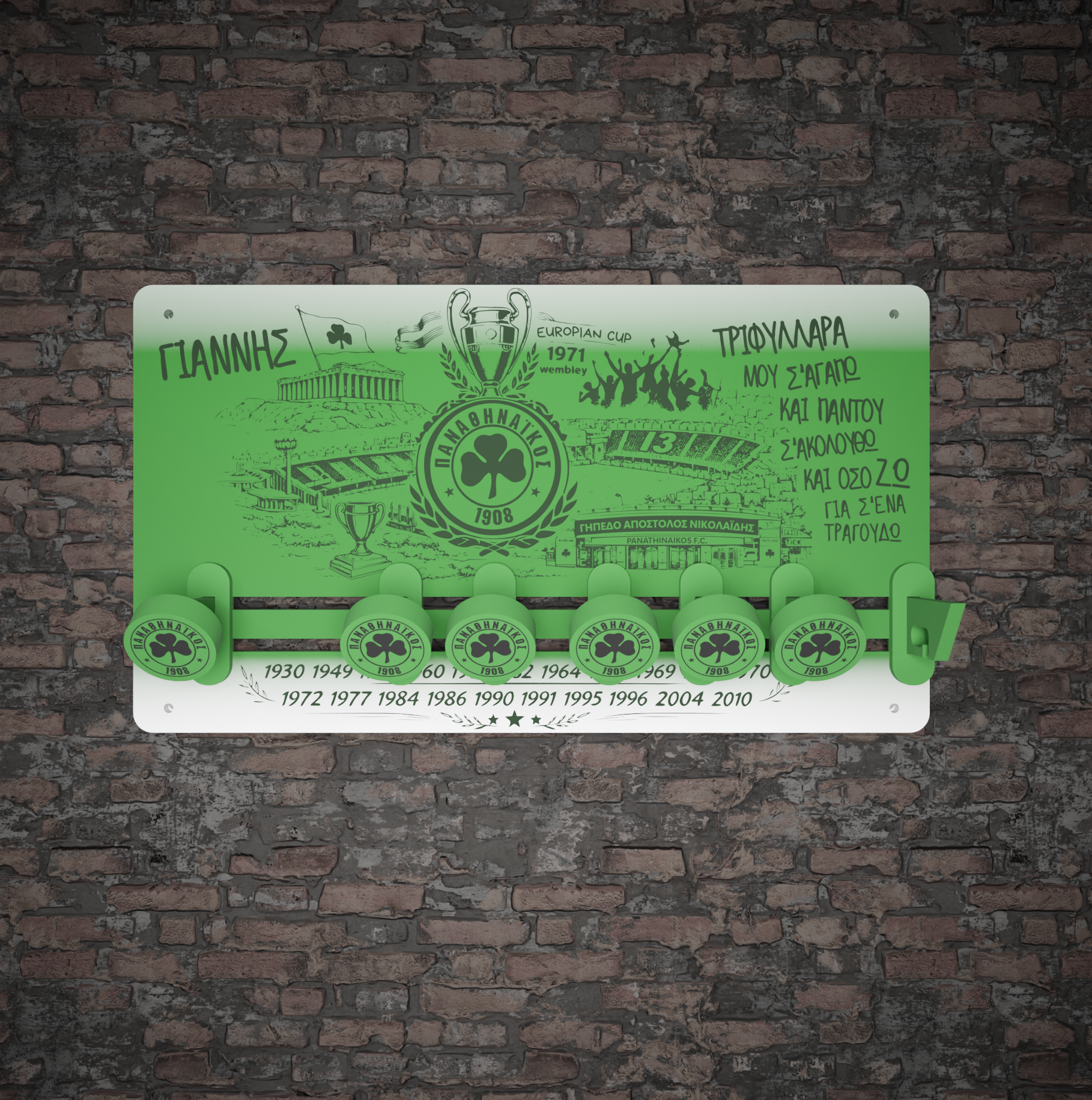 ΠΑΟ Σετ| Πασχαλινή Λαμπάδα "Γήπεδο Λεωφόρος, Στάδιο Απόστολος Νικολαΐδης" & Ξύλινη Κρεμάστρα με Όνομα(36*20cm)