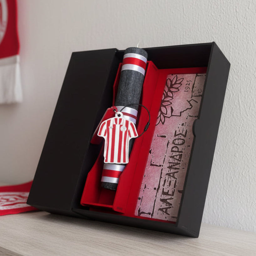 Μια εντυπωσιακή πασχαλινή λαμπάδα για τους φίλους του Ολυμπιακού, εμπνευσμένη από το δυναμικό concept “Thrilos Lion Roars”. Μια δημιουργία που εκφράζει τη δύναμη, το πάθος και την αστείρευτη ενέργεια του Θρύλου, αποτελώντας ένα ξεχωριστό δώρο για κάθε οπαδό.