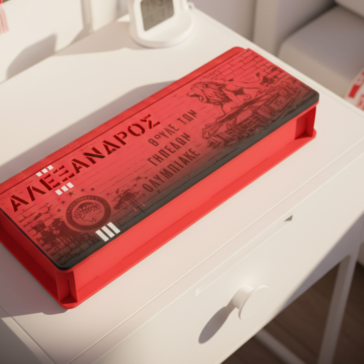 Ξύλινη Κασετίνα με Όνομα "Lion Roars Karaiskaki"