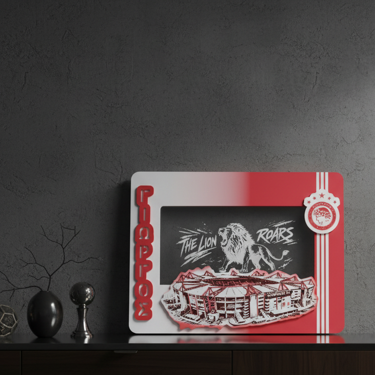 Ένα εντυπωσιακό φωτιζόμενο κάδρο για τους αληθινούς φίλους του Ολυμπιακού, εμπνευσμένο από τη δύναμη, το πάθος και την ιστορία του Θρύλου. Το “OSFP Lion Roars Karaiskaki” συνδυάζει το θρυλικό λιοντάρι της ομάδας με το εμβληματικό γήπεδο Καραϊσκάκη, δημιουργώντας ένα μοναδικό διακοσμητικό που ξεχωρίζει σε κάθε χώρο.