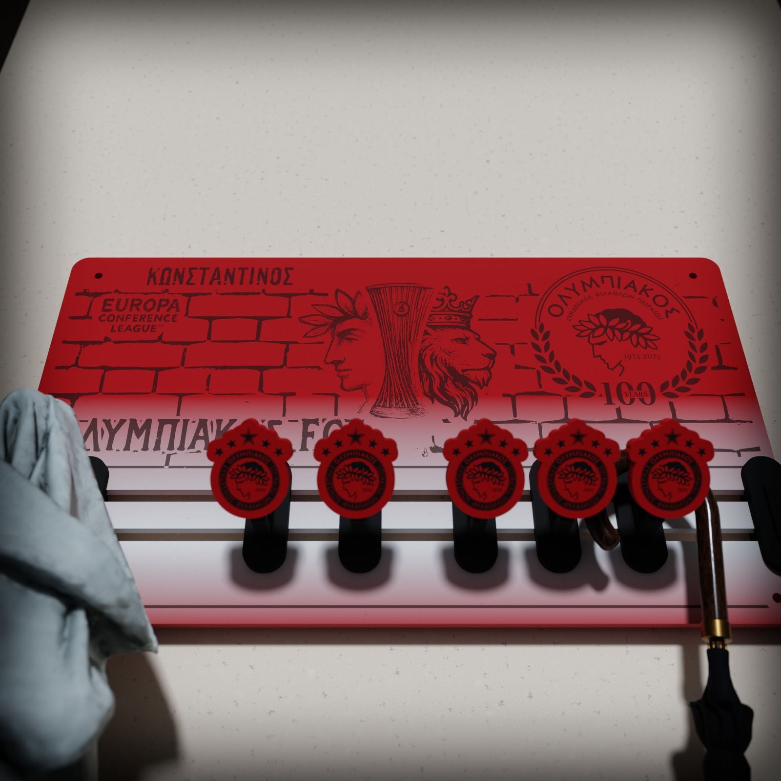 Αυτή η εντυπωσιακή κρεμάστρα τοίχου είναι εμπνευσμένη από τη θρυλική νίκη του Ολυμπιακού στο Ευρωπαϊκό Πρωτάθλημα- Europa Conference Cup.
