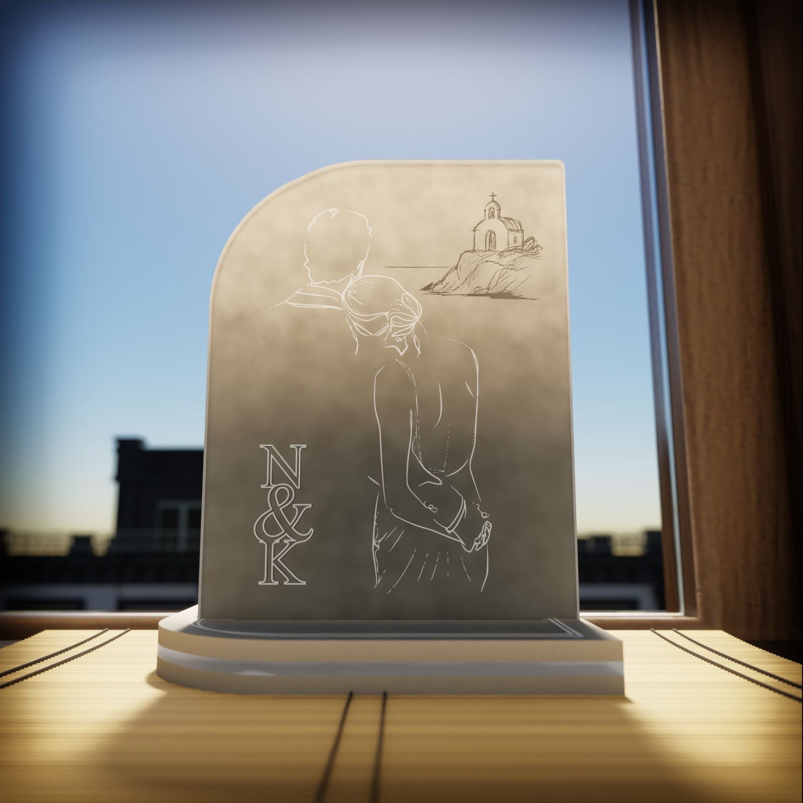 "Stand by Me" | Επιτραπέζιο Φωτιστικό Με Μονογράμματα σε Συνδυασμό Ξύλου & Plexiglass(18cm)